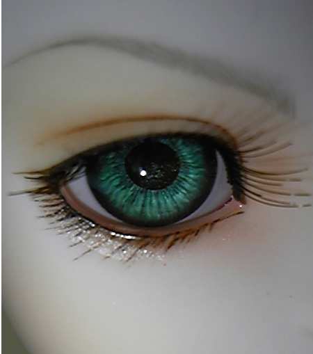 今回はまつ毛は人間用のつけまつげ(黒)とDOLL用のつけまつげ(白)をつけ、まつ毛の先端にニスの塊つけ、涙の滴のように見えるようにしました。